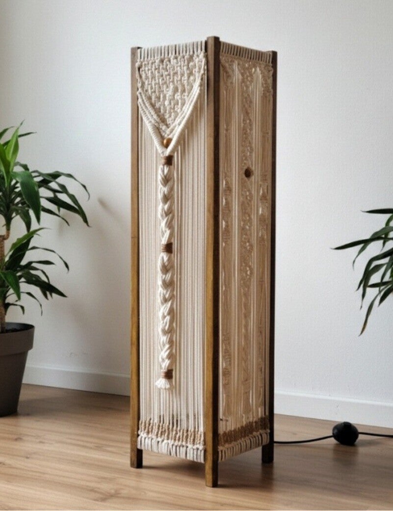 La luz cobra una nueva dimensión con nuestras lámparas de pie y colgantes de macramé. Cada una es una escultura funcional que proyecta patrones de luz y sombra únicos, creando ambientes mágicos y acogedores. Descubre cómo una pieza artesanal puede ser el toque de diseño que tu espacio necesita, combinando funcionalidad con el encanto bohemio.